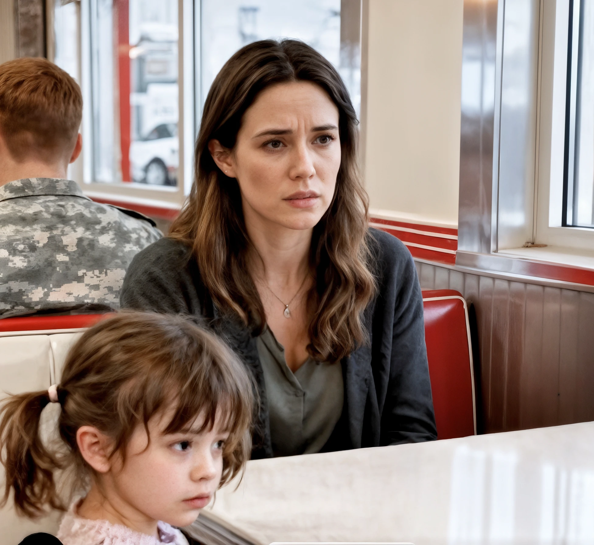 Il sergente Michael Harris, a casa in licenza dopo una lunga missione, si era fermato lì solo per sgranchirsi le gambe e godersi un pasto caldo senza il rumore della città. Ordinò un caffè, una fetta di torta e si sistemò in un tavolino vicino alla finestra. Era passato mesi dall’ultima volta che si era seduto in un posto così tranquillo.