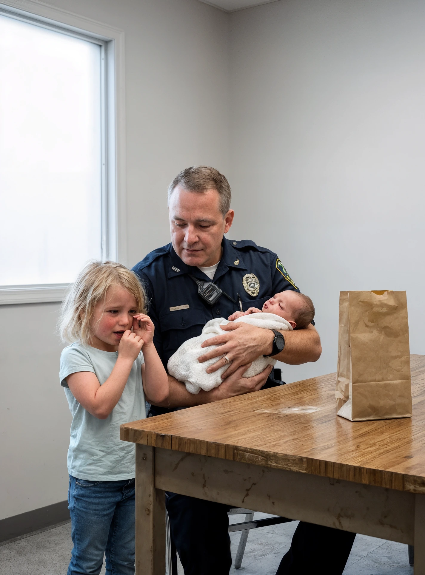 La stazione si risvegliò di colpo, come fanno i luoghi silenziosi quando l’emergenza varca la soglia: telefoni che squillavano, sedie che strisciavano, radio che crepitavano. Nolan sollevò il bambino dal sacchetto e lo strinse alla divisa, usando il proprio calore perché in quell’istante era l’unico calore disponibile.