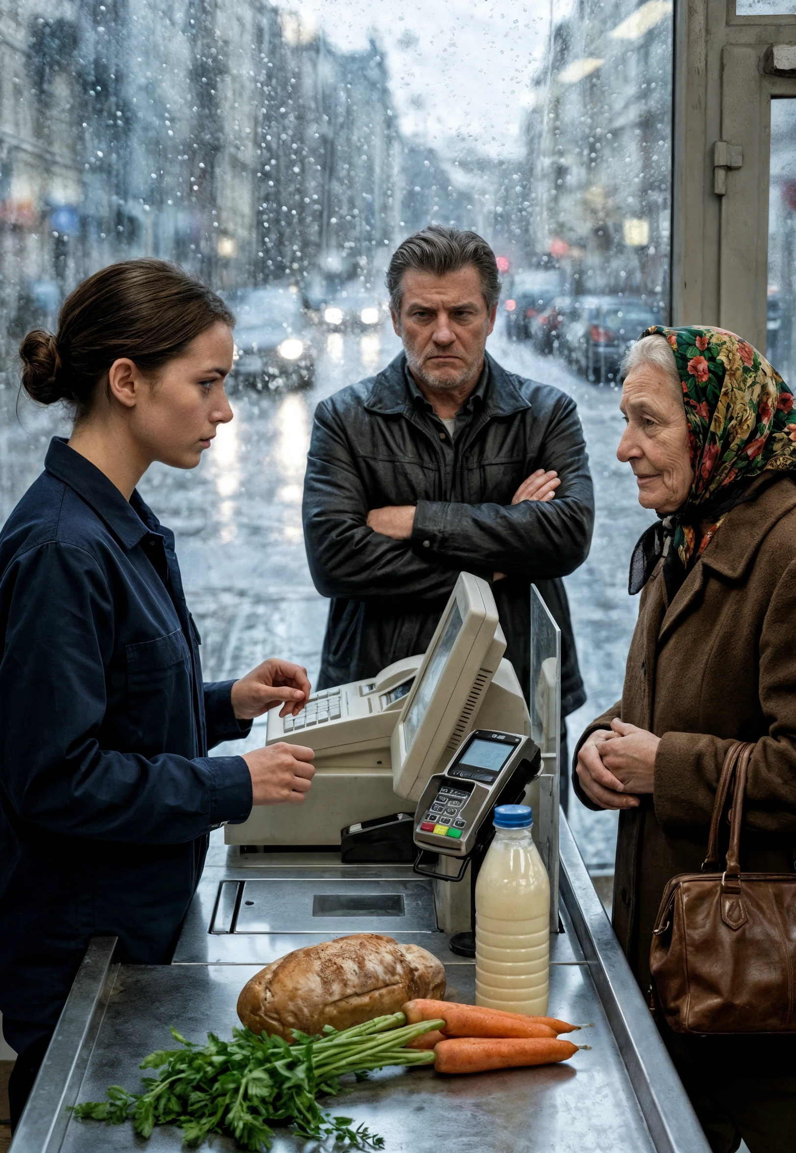 Alina alzò lo sguardo, e per un attimo il mondo rallentò. Vide le mani della donna anziana—le vene blu disegnavano una lunga vita di lavoro, la pelle tesa sulle ossa. In quell’istante, non vide una sconosciuta; vide un ricordo vivente della propria nonna, una donna dalla stessa quieta resilienza che misurava la vita con i kopeki di una pensione microscopica. Qualcosa nel petto di Alina si strinse, un dolore acuto e viscerale che squarciò la crosta gelata della sua stessa stanchezza.